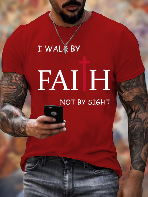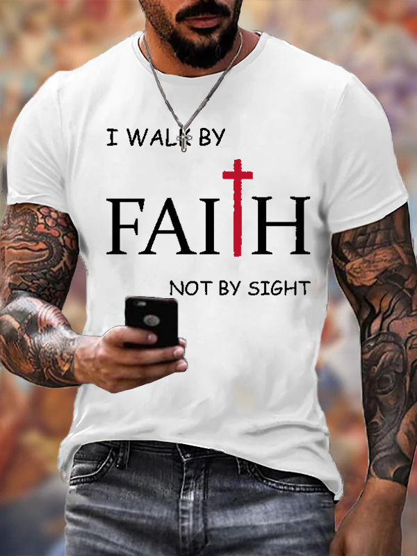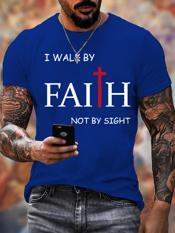 I Walk By Faith Not By Sight Christian Cotton T-Shirt