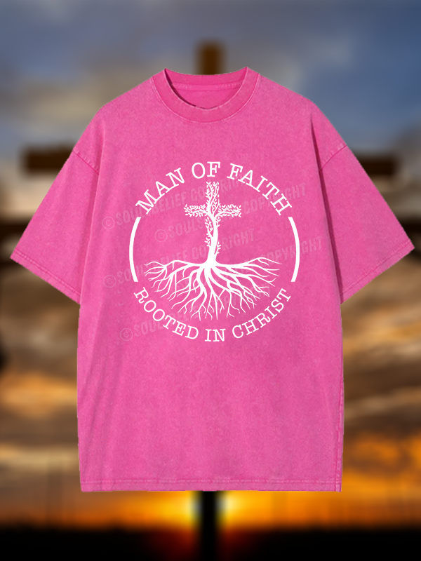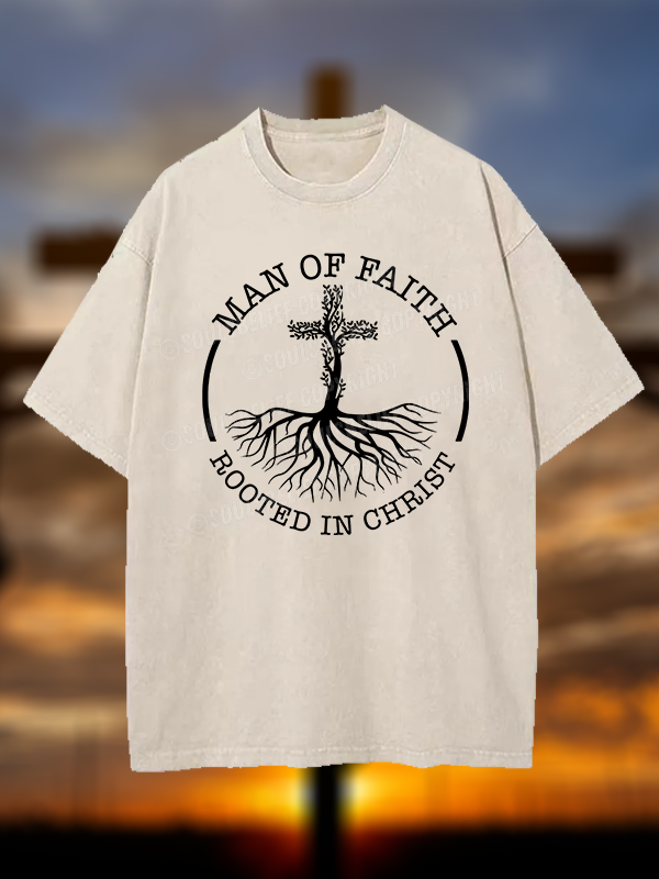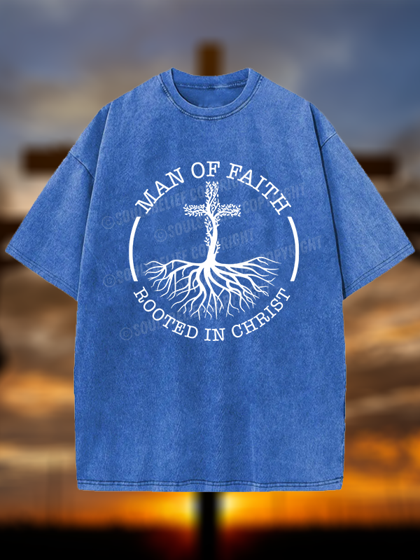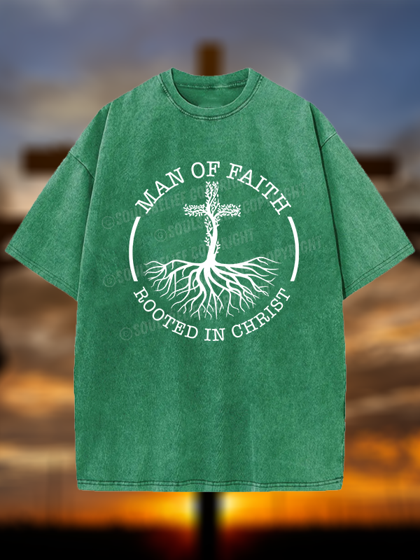 Man of Faith Rooted in Christ Christian Washed T-Shirt