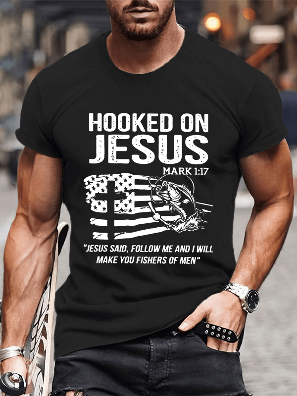 Hooked On Jesus Christian Cotton T-Shirt