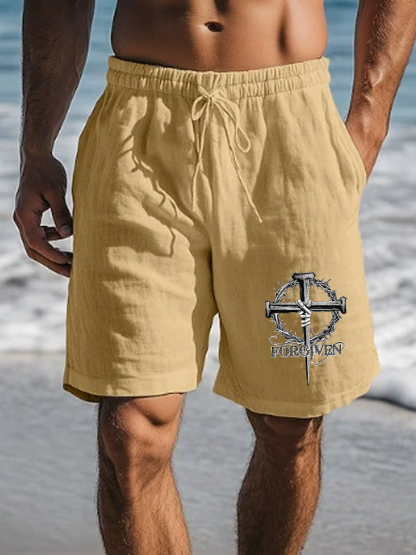 Men's Cross Forgiven Print Christian Beach Shorts