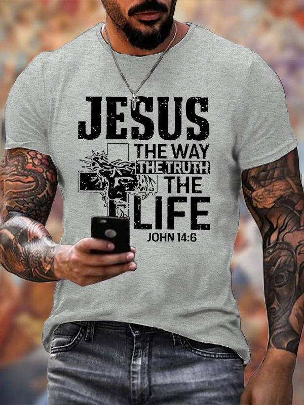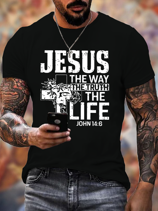 Jesus the Way Truth Life John 14:6 Christian Cotton T-Shirt