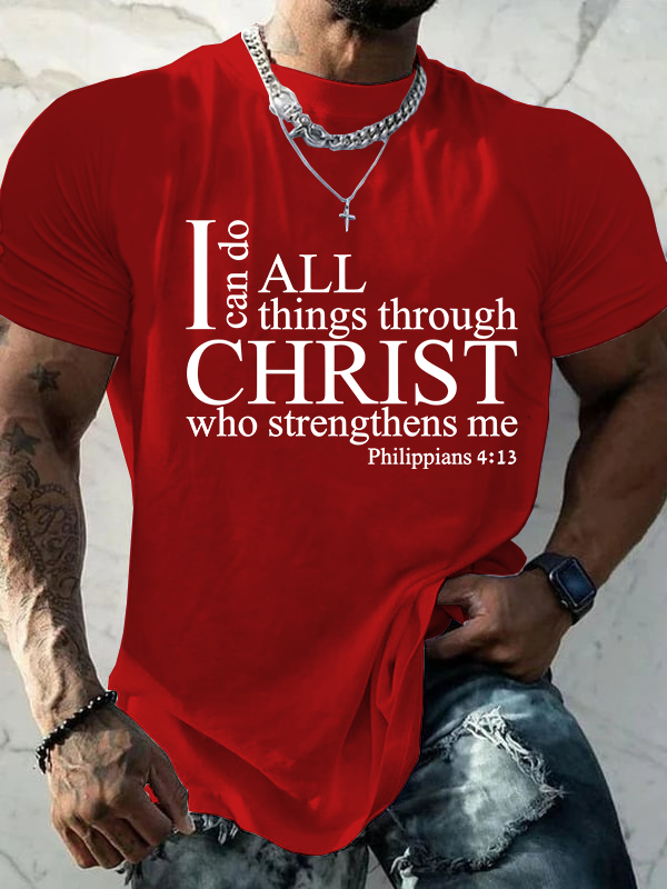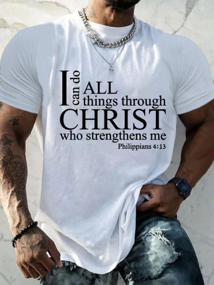 I Can Do All Things Through Christ Who Strengthens Me Philippians 4:13 Christian Cotton T-Shirt