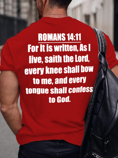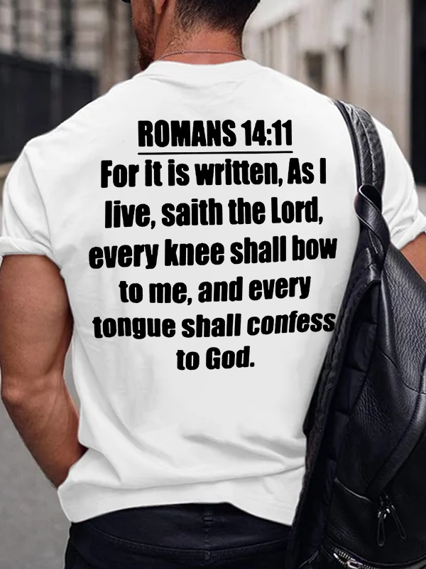 Romans 14:11 For It Is Written Christian Cotton T-Shirt