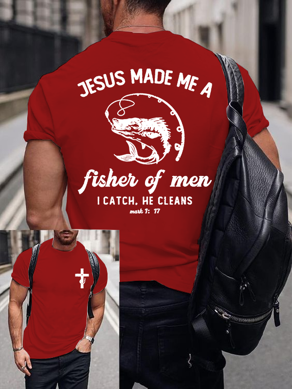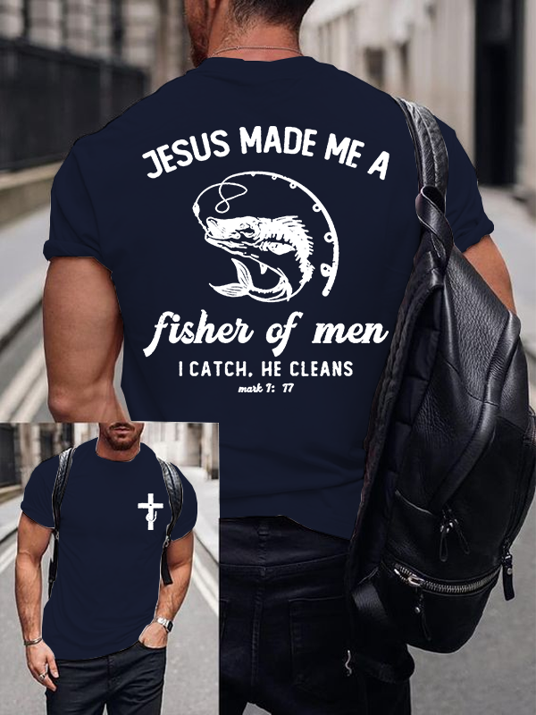 Fisher of Men Cross Jesus God Christian Cotton T-Shirt