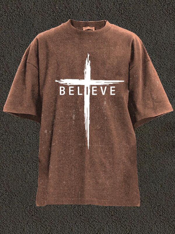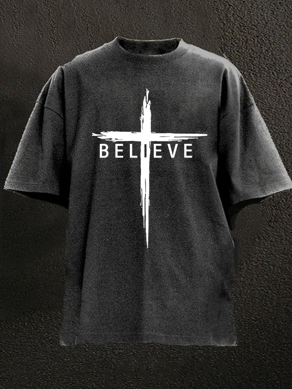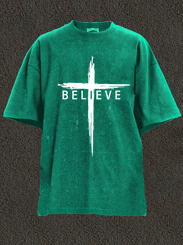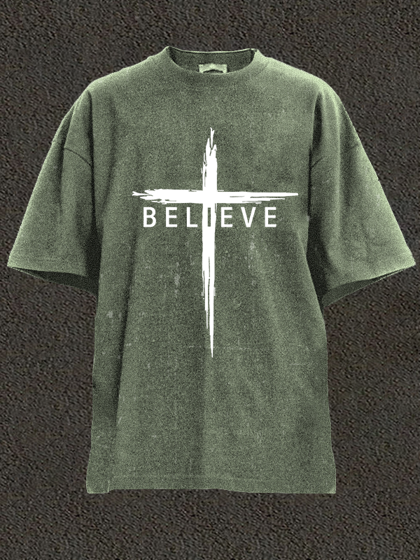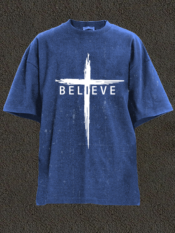 Believe Cross Jesus Christian Washed T-Shirt