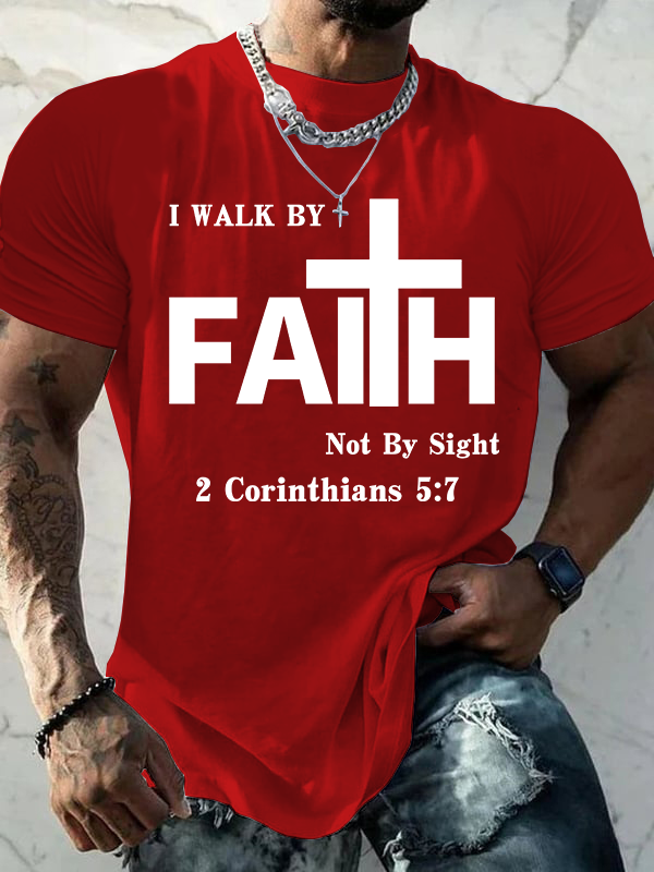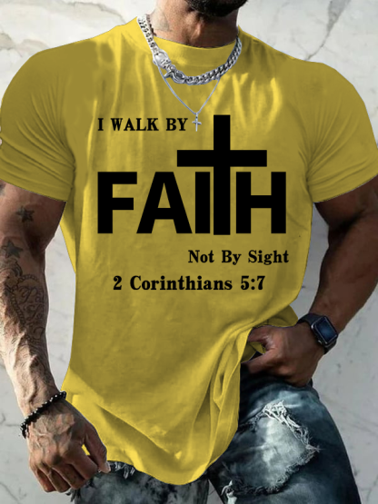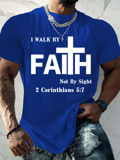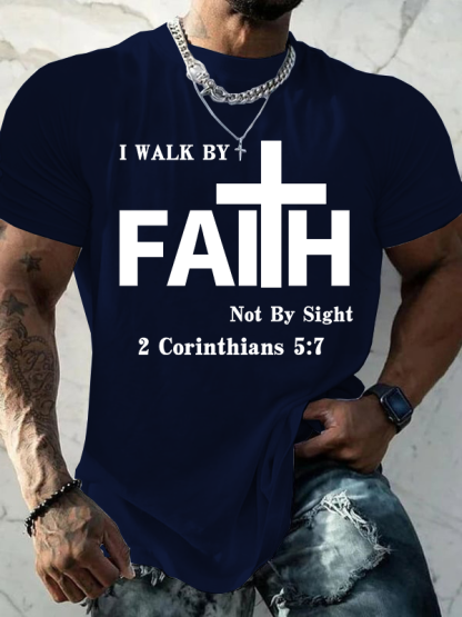 Walk By Faith, Not By Sight – 2 Corinthians 5:7 Christian Cotton T-Shirt