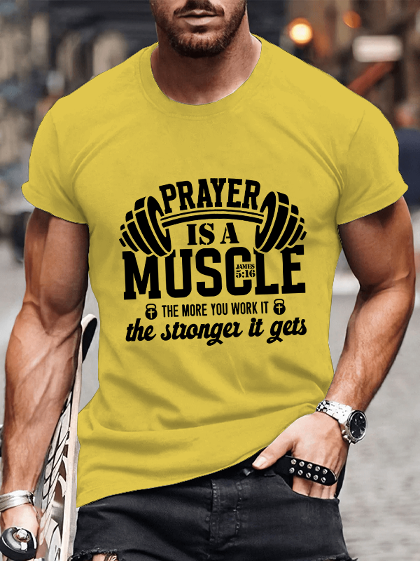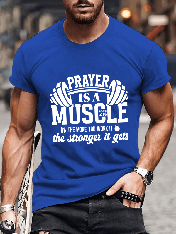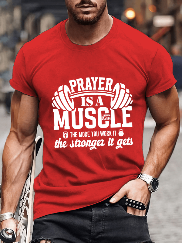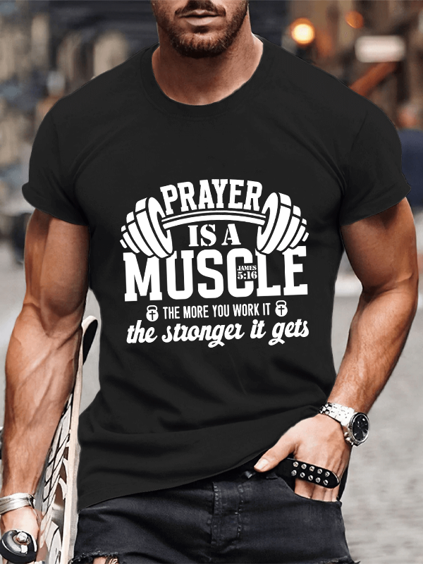 Prayer Is A Muscle The More You Work It Gets James 5:16 Christian Cotton T-Shirt