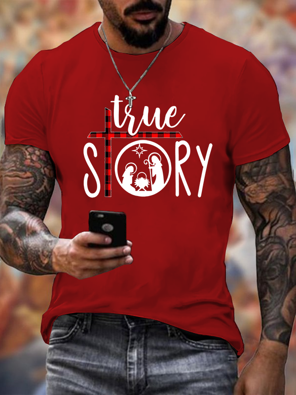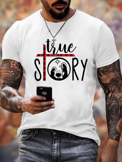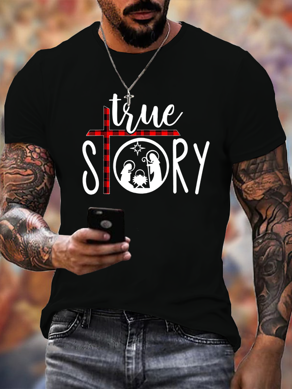 Christmas Nativity True Story Jesus Cotton T-Shirt