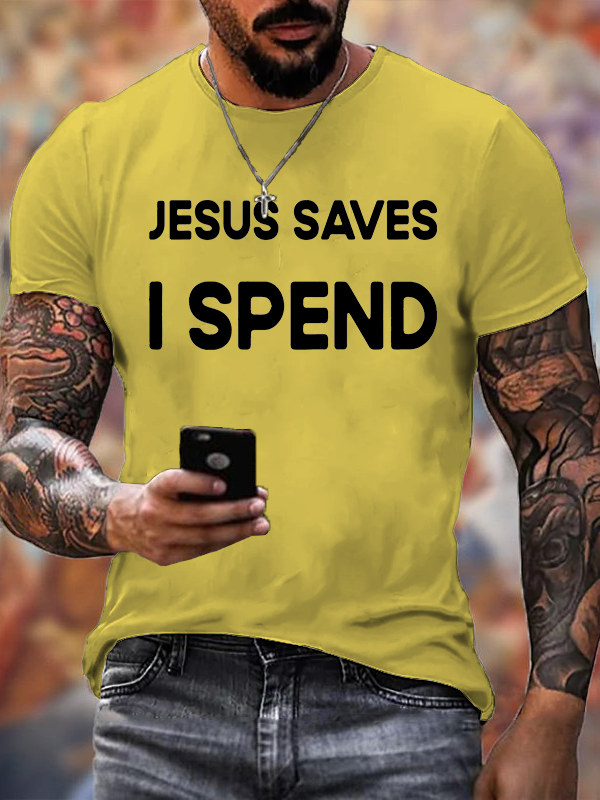 Jesus Saves I Spend Christian Cotton T-Shirt