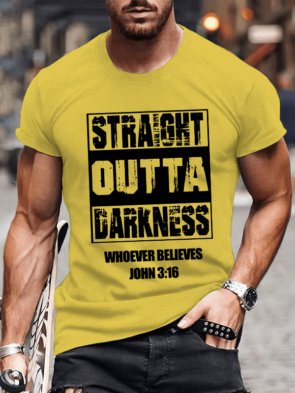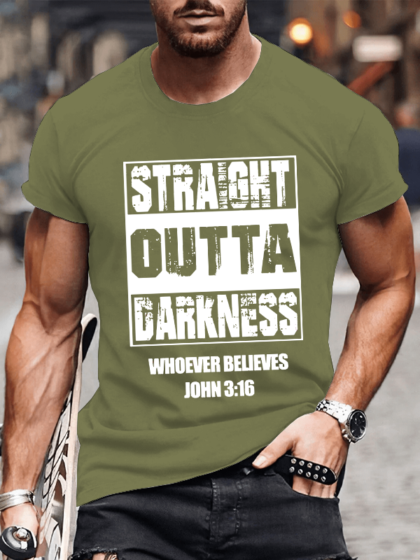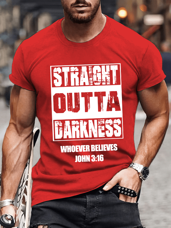 Straight Outta Darkness Whoever Believes John 3:16 Christian Cotton T-Shirt