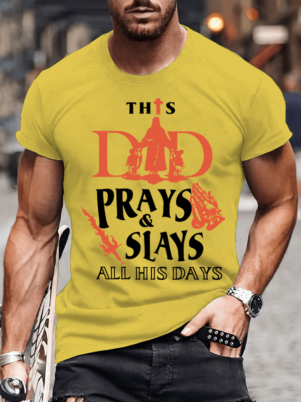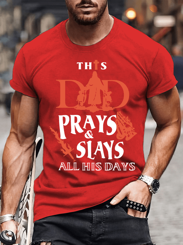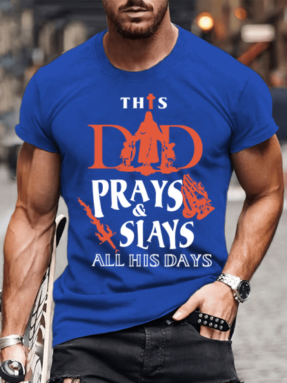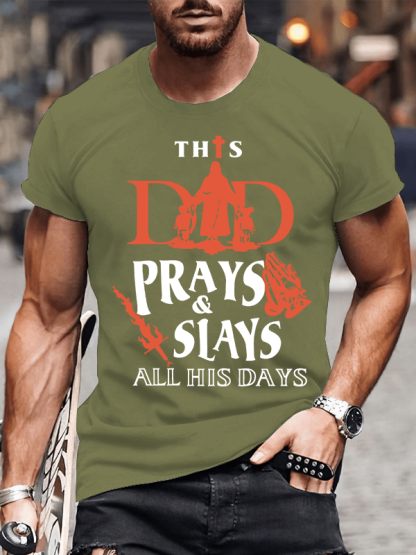 This Dad Prays And Slays All His Days Christian Cotton T-Shirt