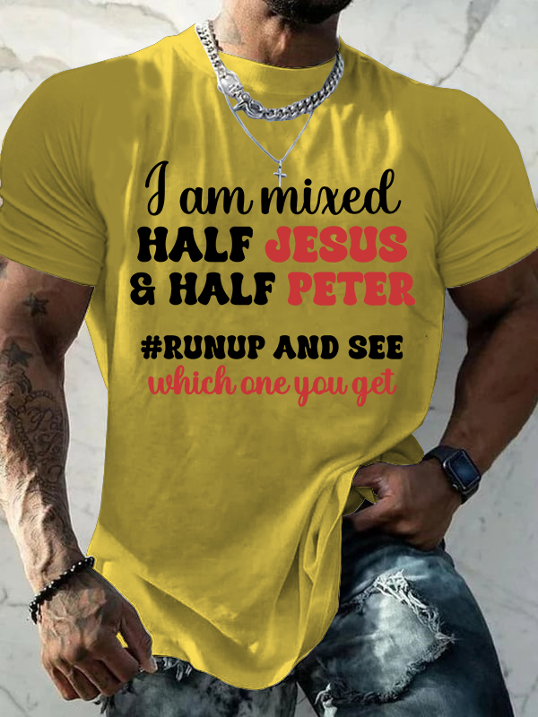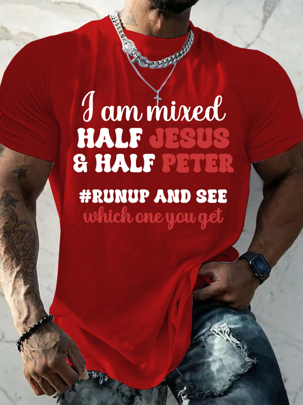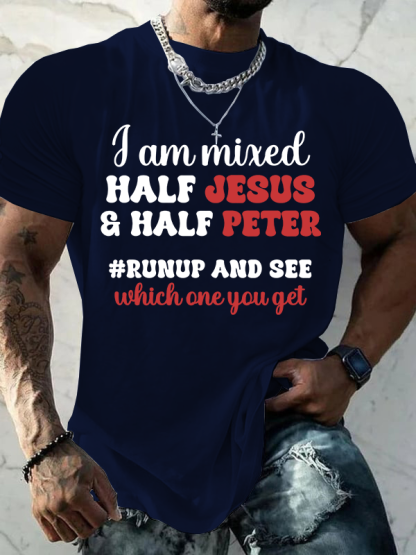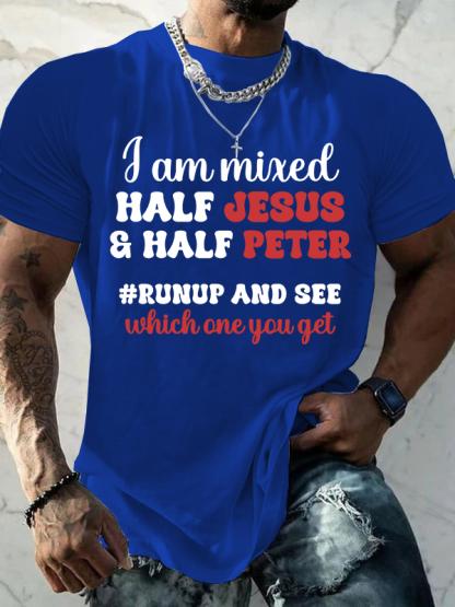 I Am Mixed Half Jesus And Half Peter Jesus God Christian Cotton T-Shirt