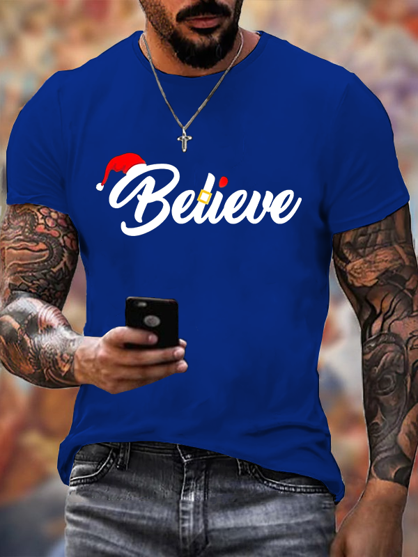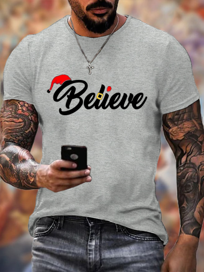 Believe Merry Christmas Santa Hat Christian Faith Cotton T-Shirt