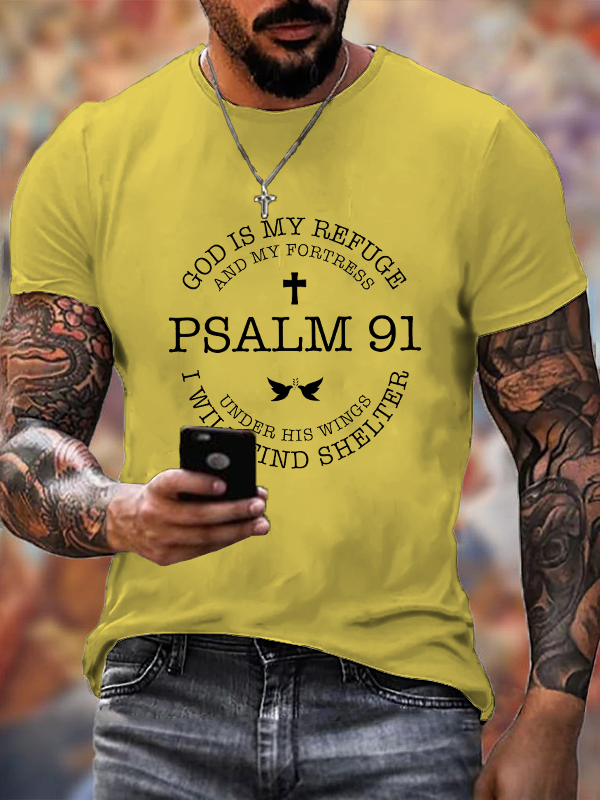 Psalm 91, God Is My Refuge And My Fortress Under His Wings I Will Find Shelter Christian Cotton T-Shirt