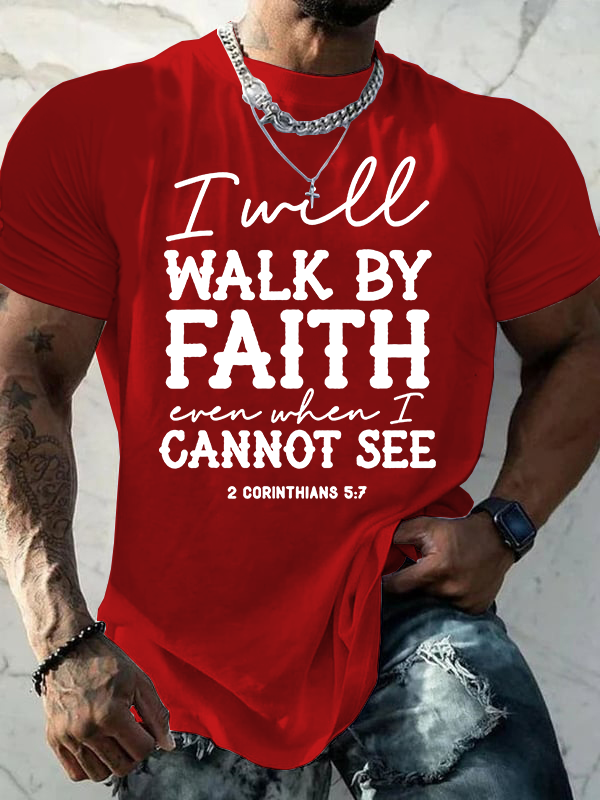 I Will Walk By Faith Even When I Cannot See Jesus God Christian Cotton T-Shirt