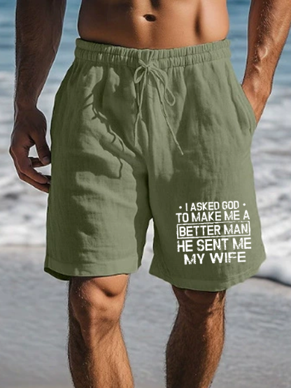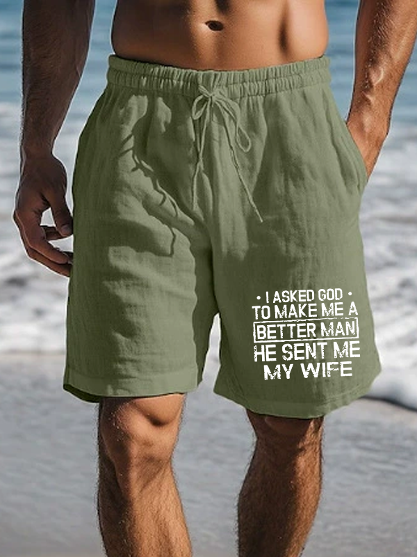 Men's I Asked God To Make Me A Better Man He Sent Me My Wife Christian Beach Shorts