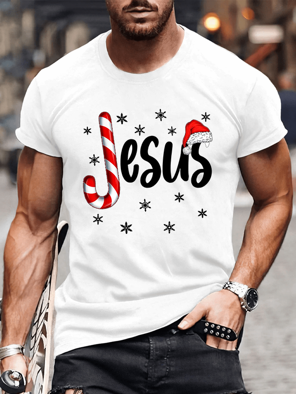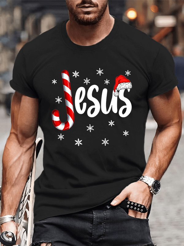 Christian Jesus Is The Reason Candy Cane Religious Christmas Cotton T-Shirt