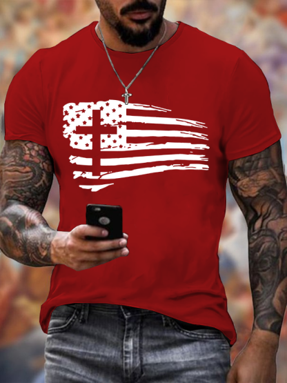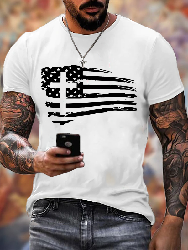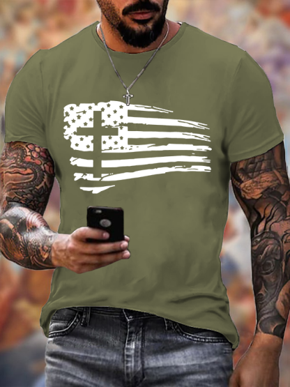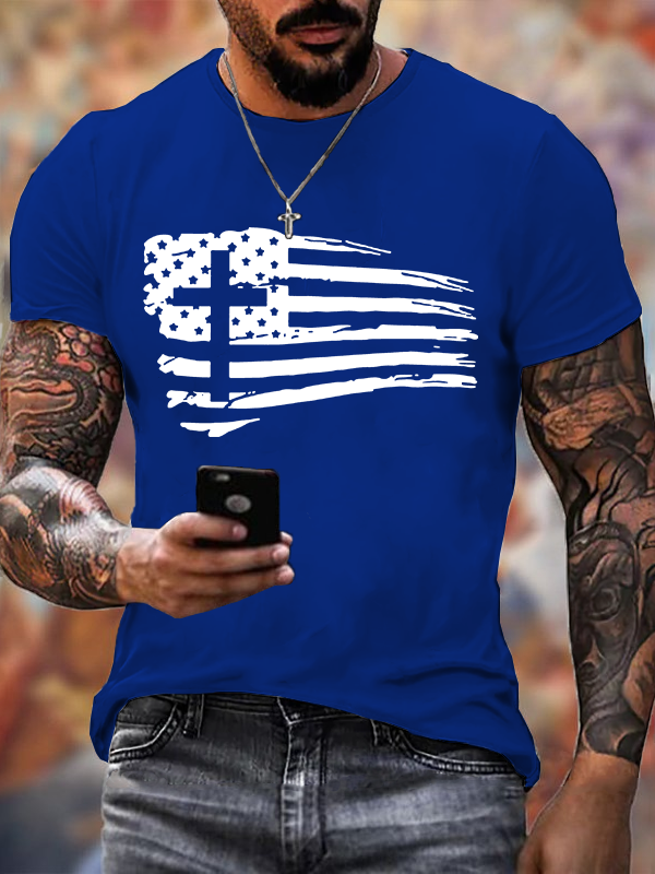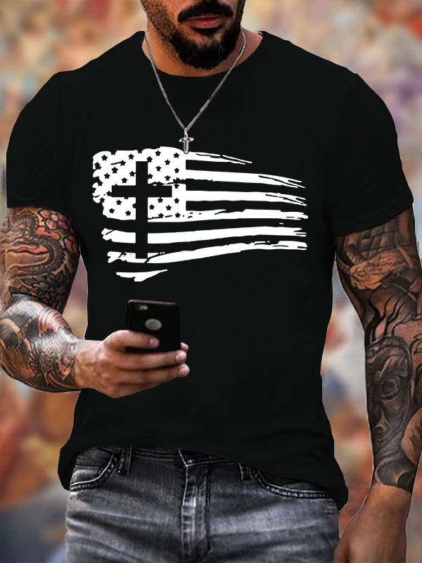 Tattered Flag Christian Cotton T-Shirt
