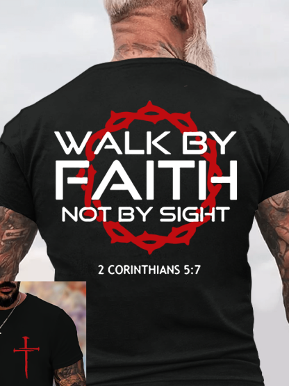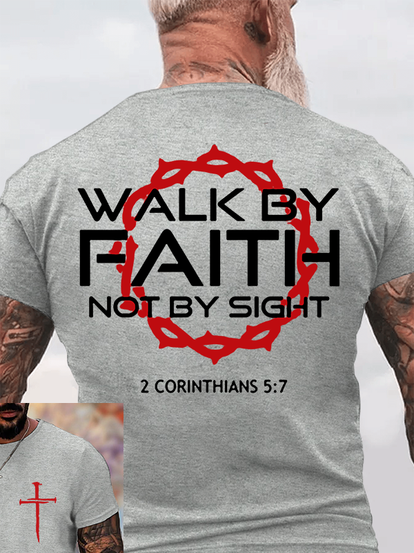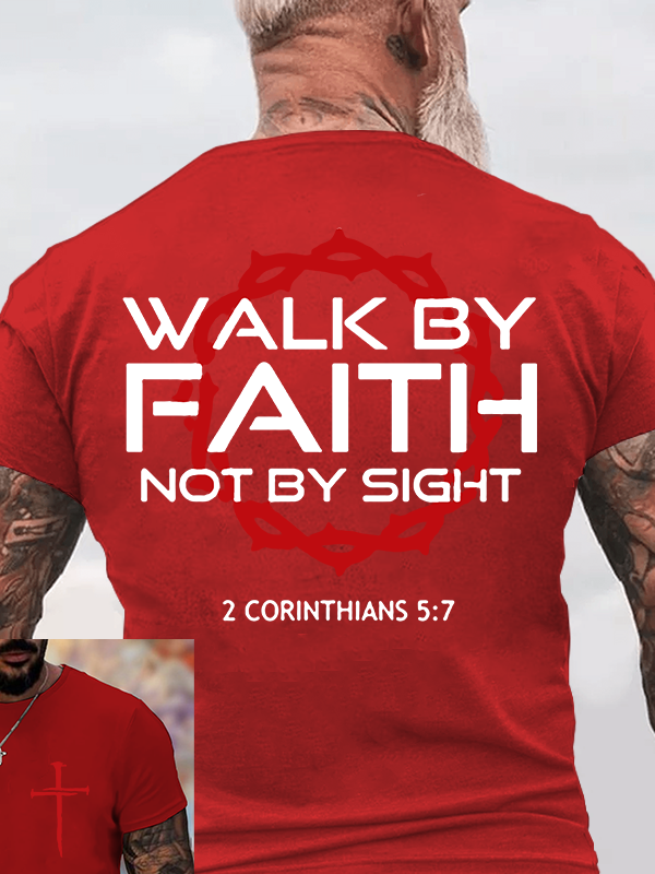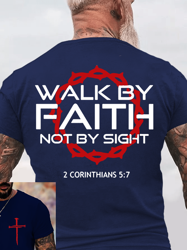 Walk By Faith Not By Sight 2 Corinthians 5:7 Christian Cotton T-Shirt