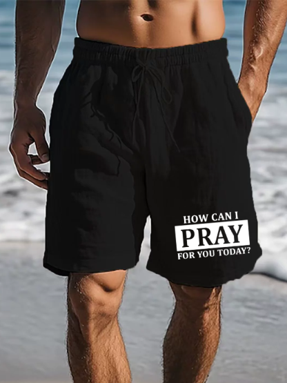 Men's Prayer For You Jesus or Faith How Can I Pray Christian Beach Shorts