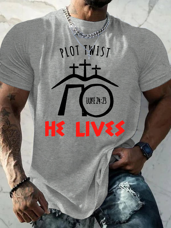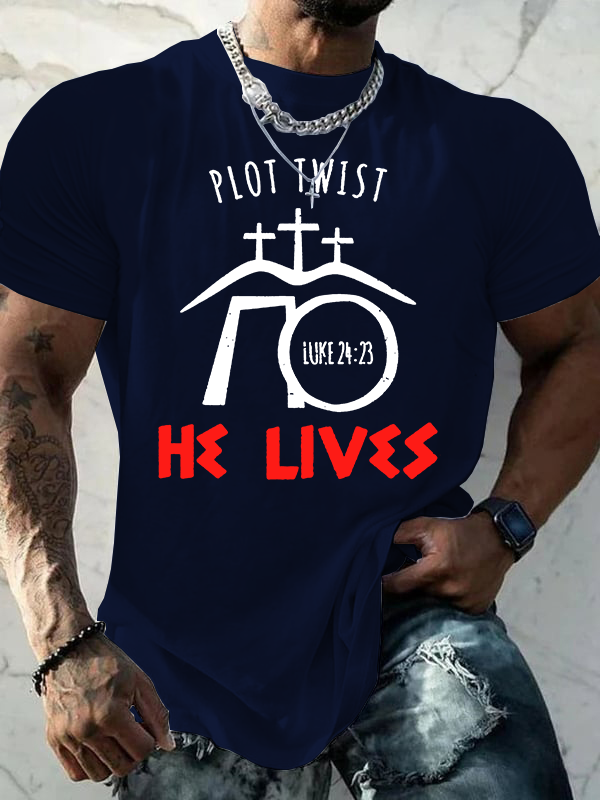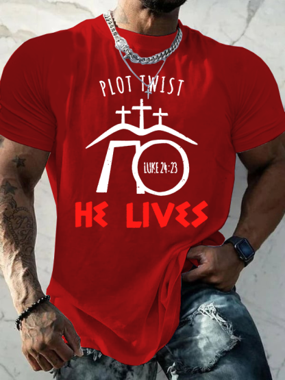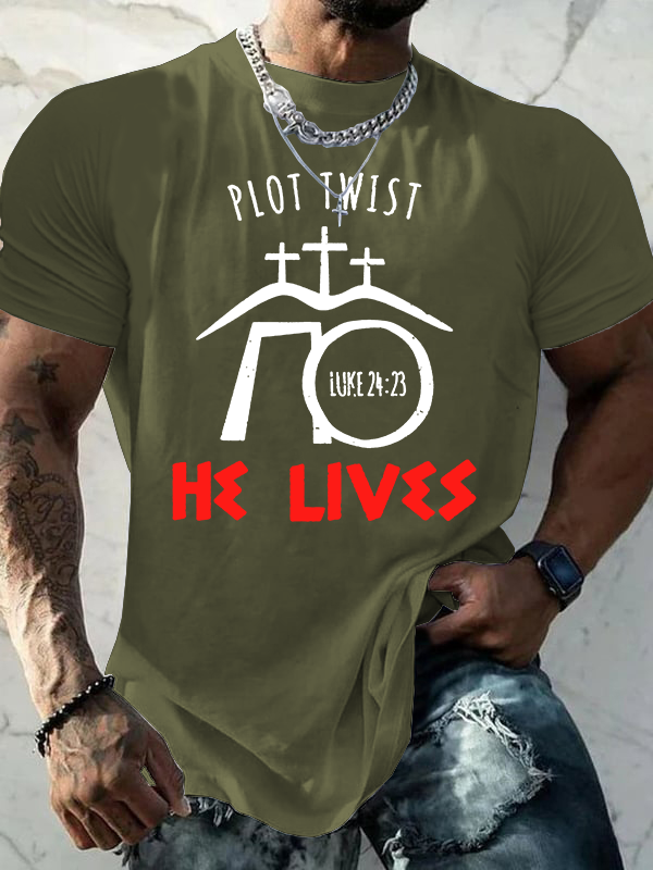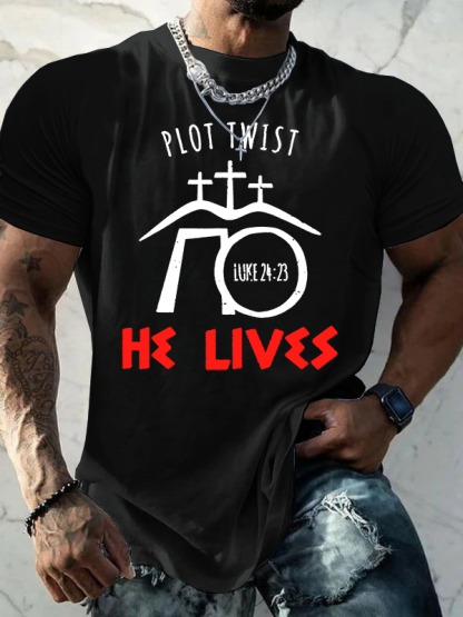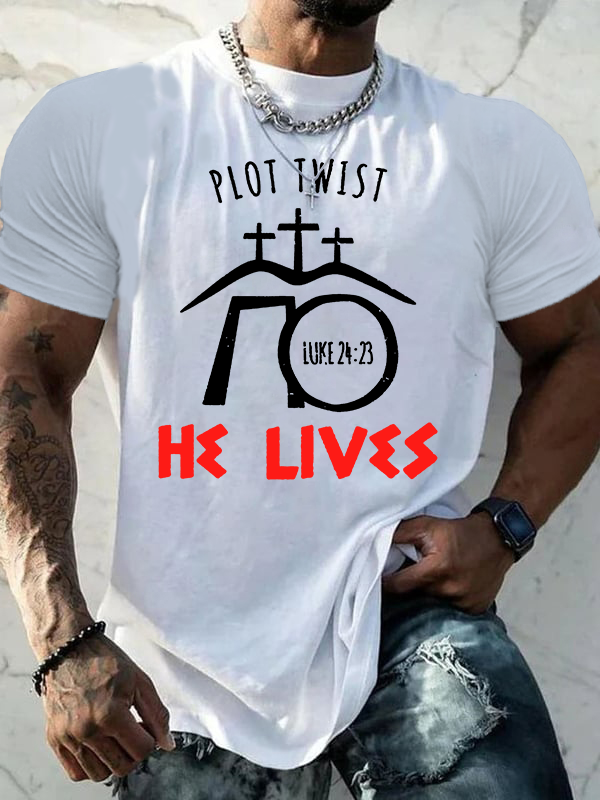 Plot Twist He Lives Luke Jesus God Christian Cotton T-Shirt