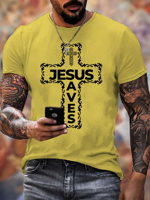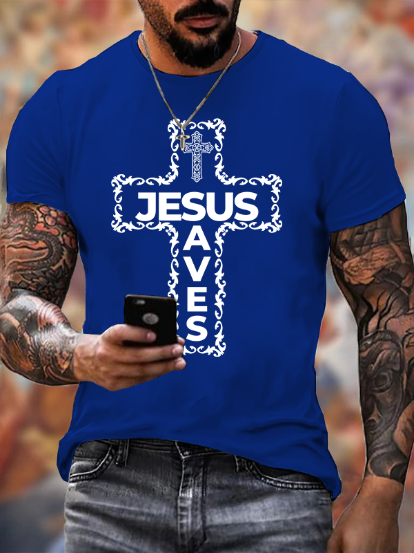 Red Cross Jesus God Christian Premium Mercerized Cotton Tee