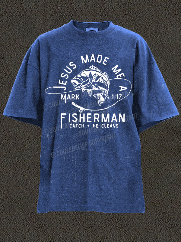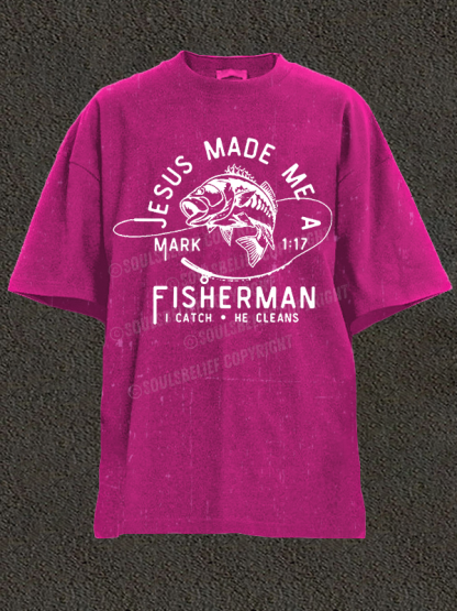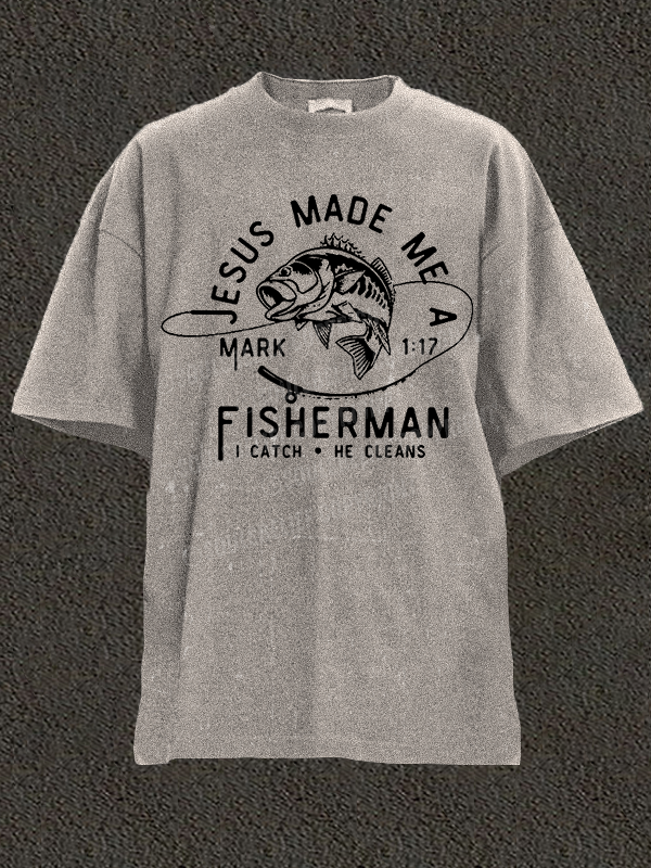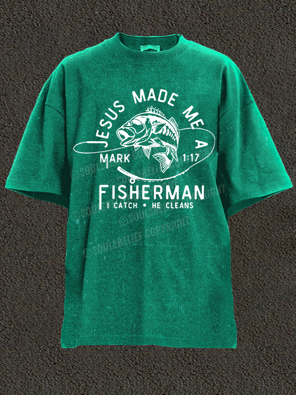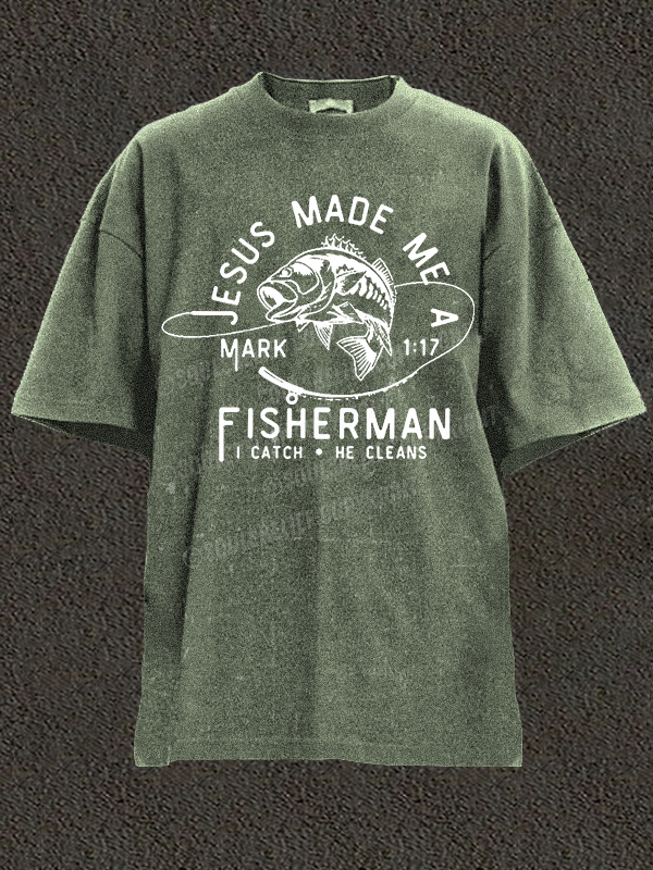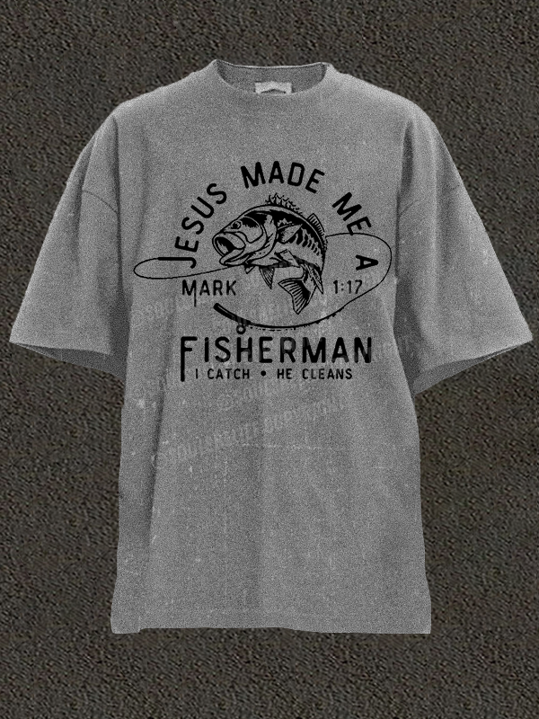 Jesus Made Me A Fisherman Christian Washed T-Shirt