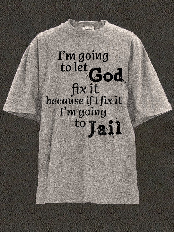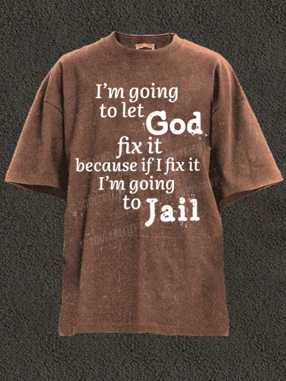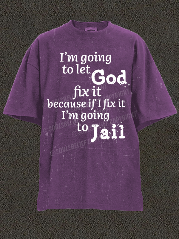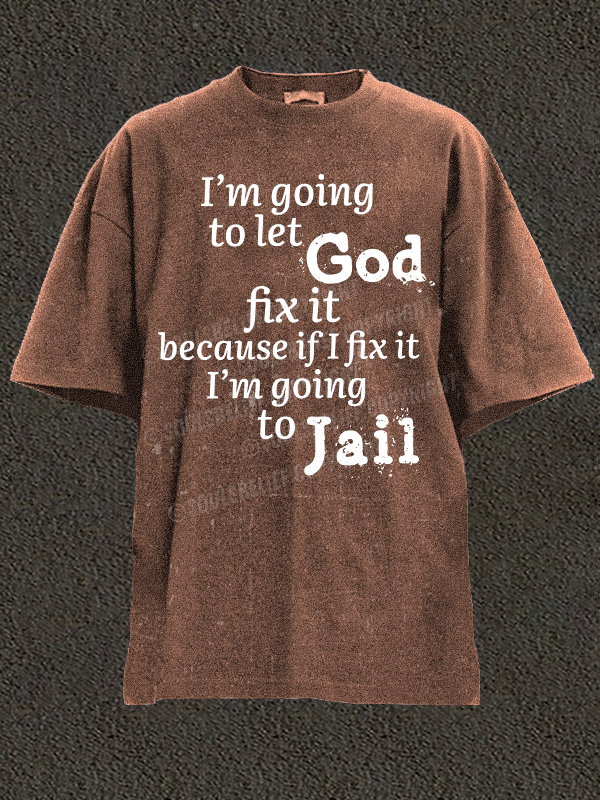 I’m Going to Let God Fix It Because if I Fix It I’m Going to Jail Christian Washed T-Shirt