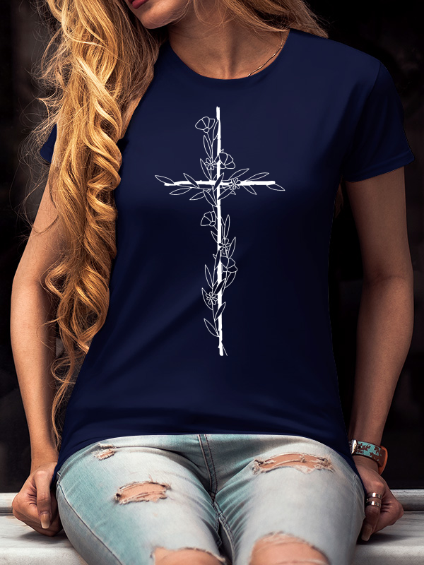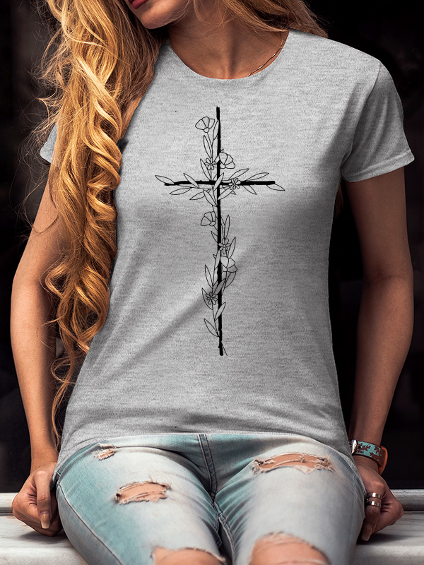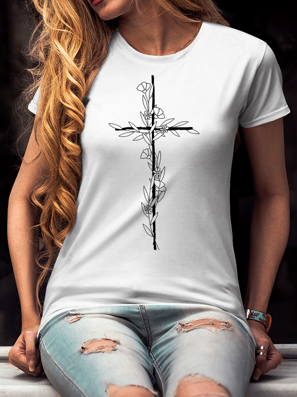 Flower Cross Print Women's T-Shirt