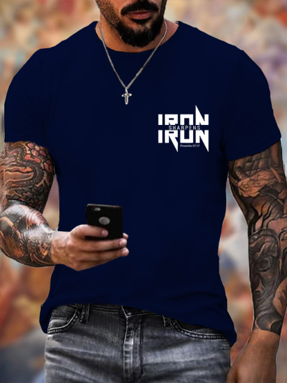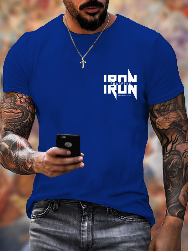 IRON SHARPENS IRON Proverbs 27:17 Christian Men's T-shirt