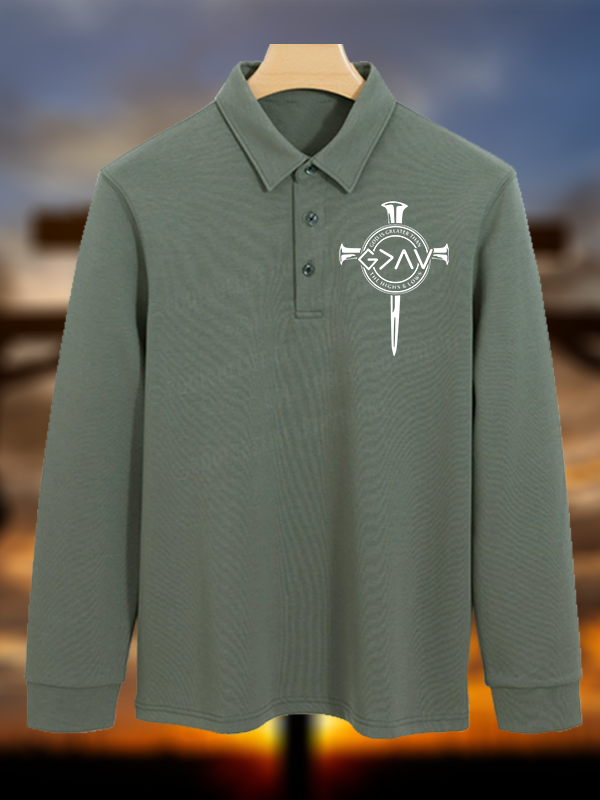 God Is Greater Than Your Highs and Lows Christian Cotton Long-sleeve Polo Shirt