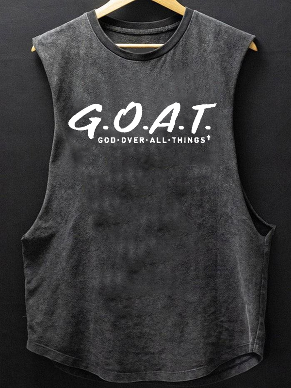 DESIGN: Sometimes the specialty of the item is within its name. Introducing God Over All Things Washed Tank. Cut deeper on the shoulders to showcase the delts from all angles. They are made with soft cotton and stretchy lycra fabric, straight bottom hem cut, God Over All Things letters printed on the chest.
