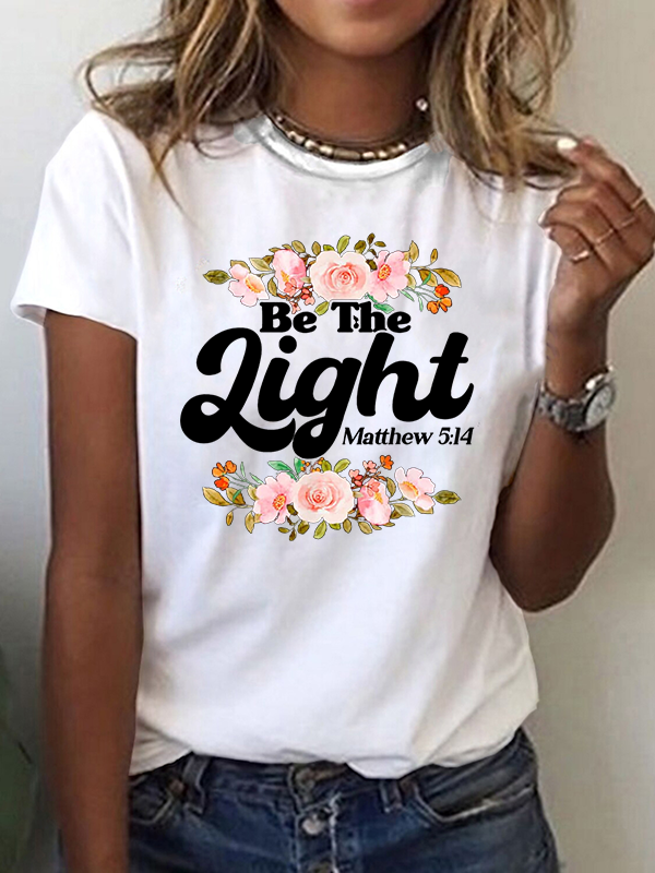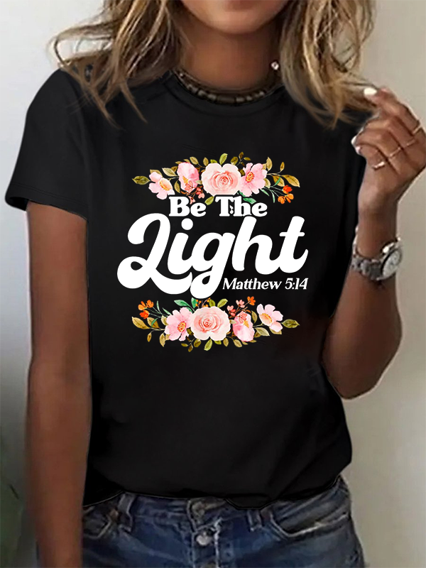Christian Bible Verse Matthew 5:14 Be The Light Flower Cotton T-Shirt