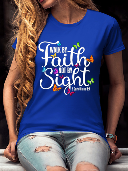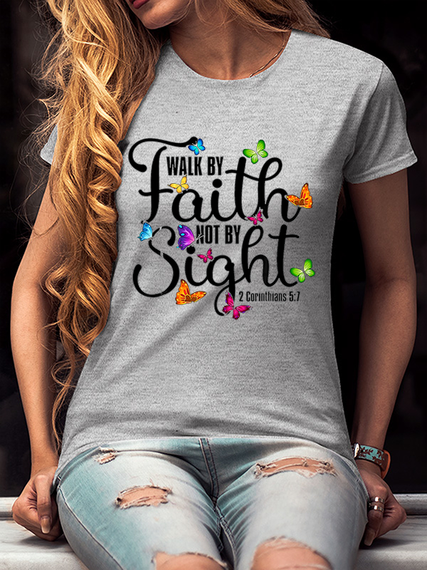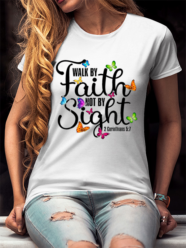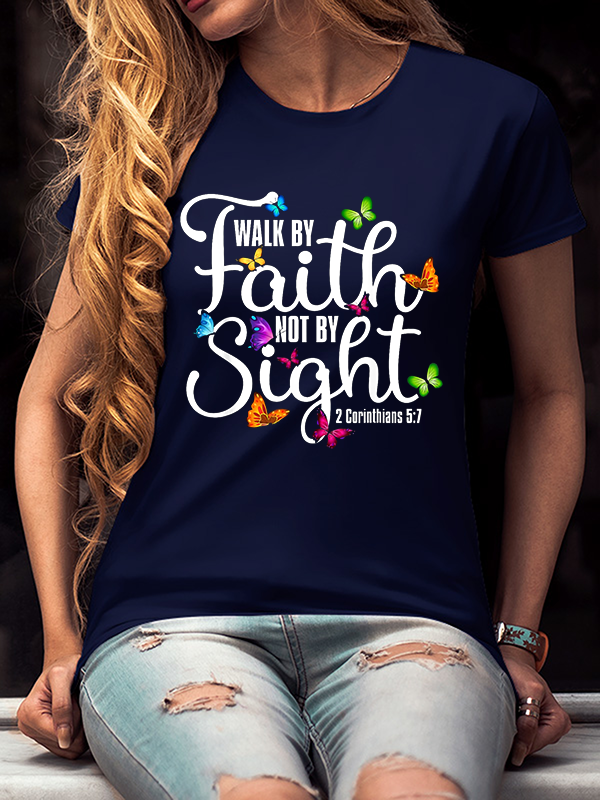 Walk By Faith Not By Sight 2 Corinthians 5 7 Butterfly Cotton T-Shirt