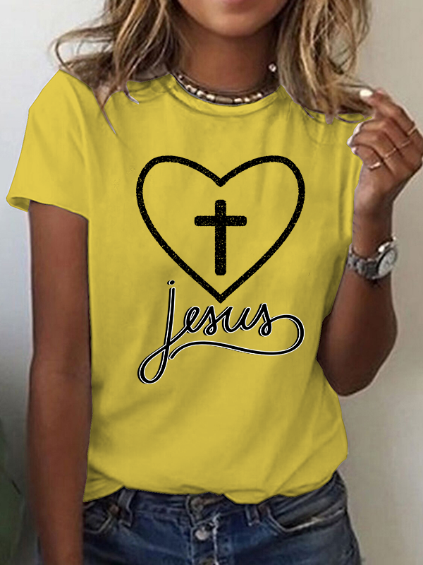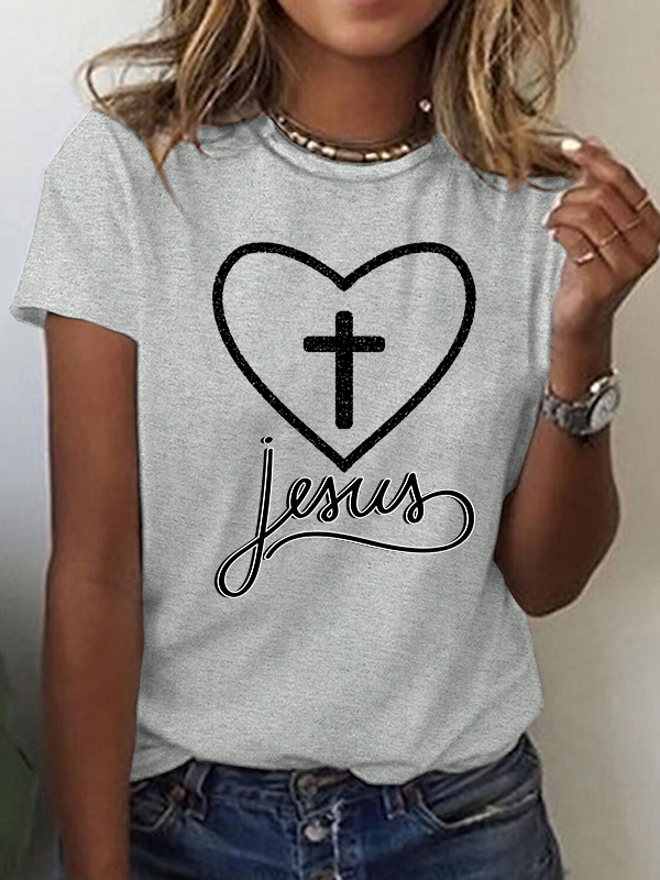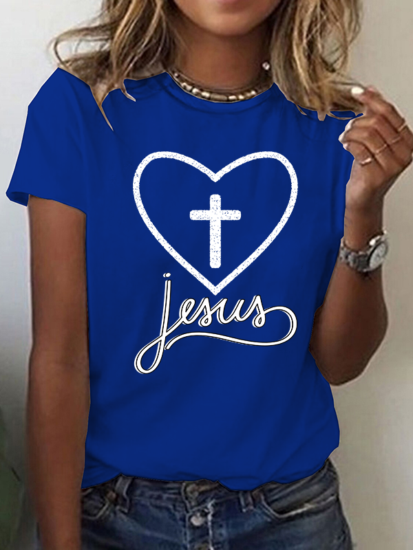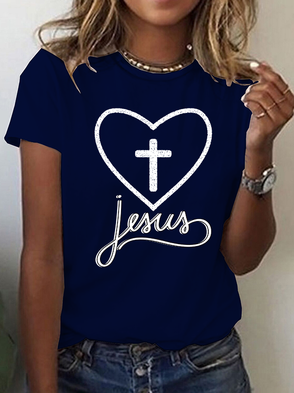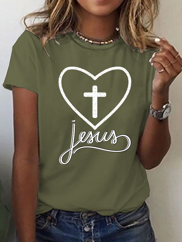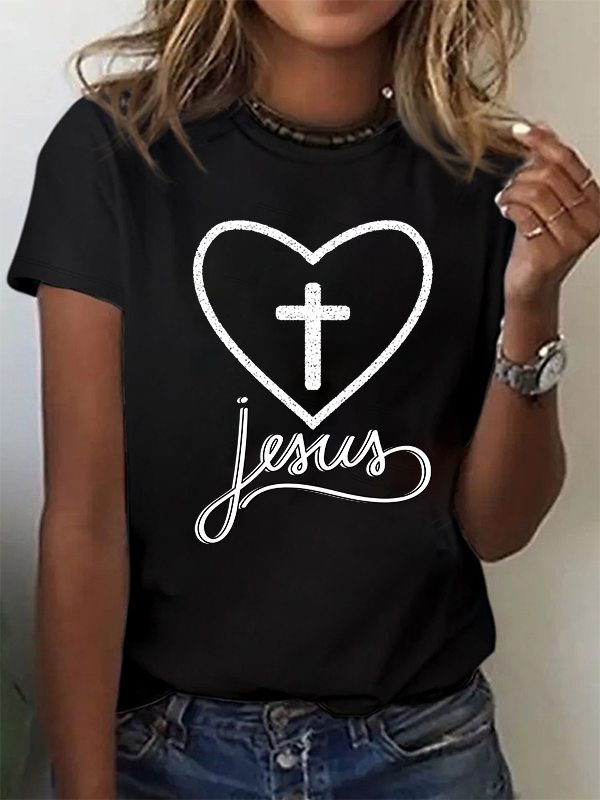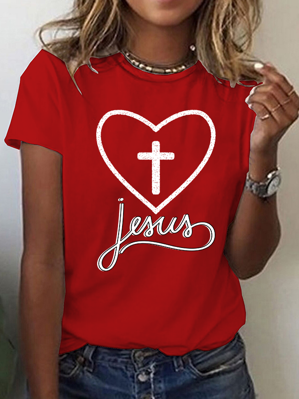 Jesus Heart Cross Christian Cotton T-Shirt