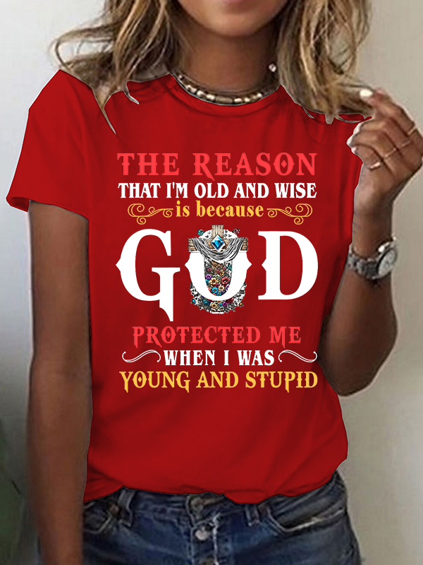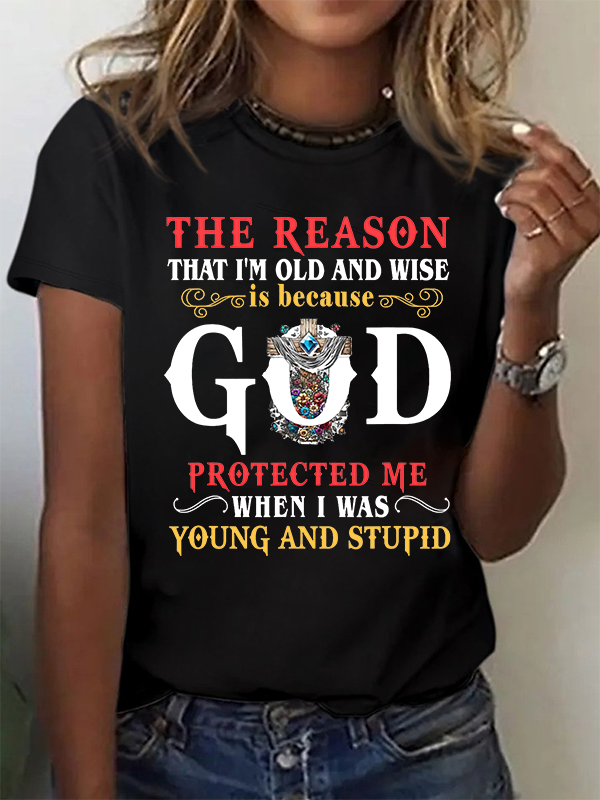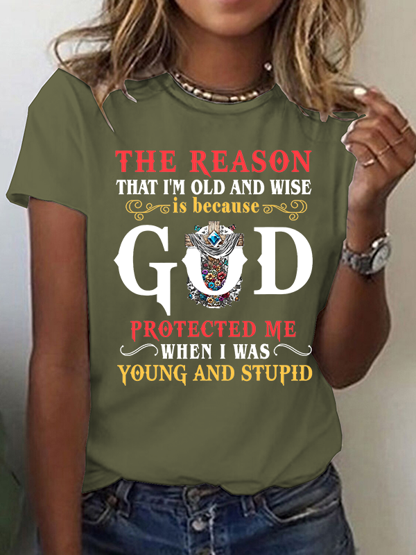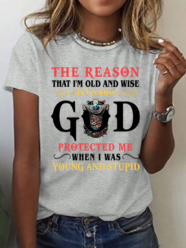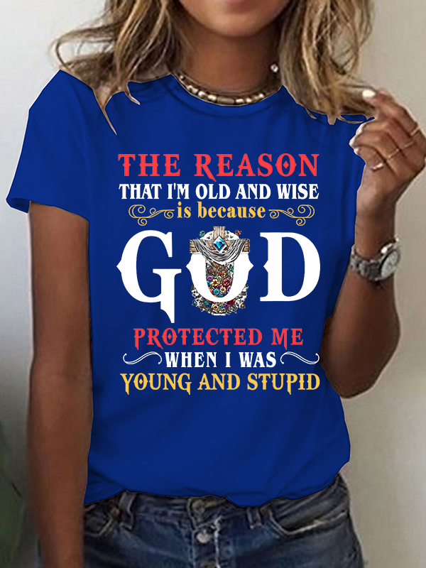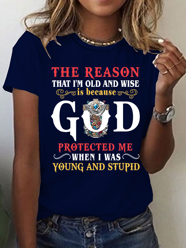 The Reason I'm Old And Wise Is Because God Protected Me When I Was Young And Stupid Christian Cotton T-Shirt