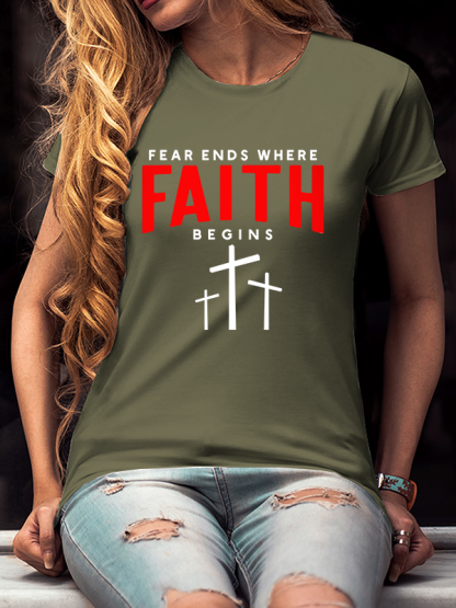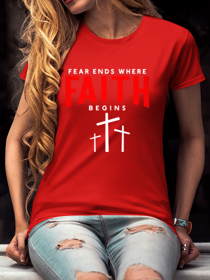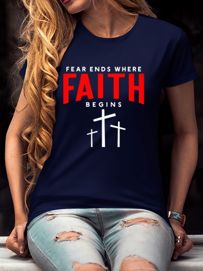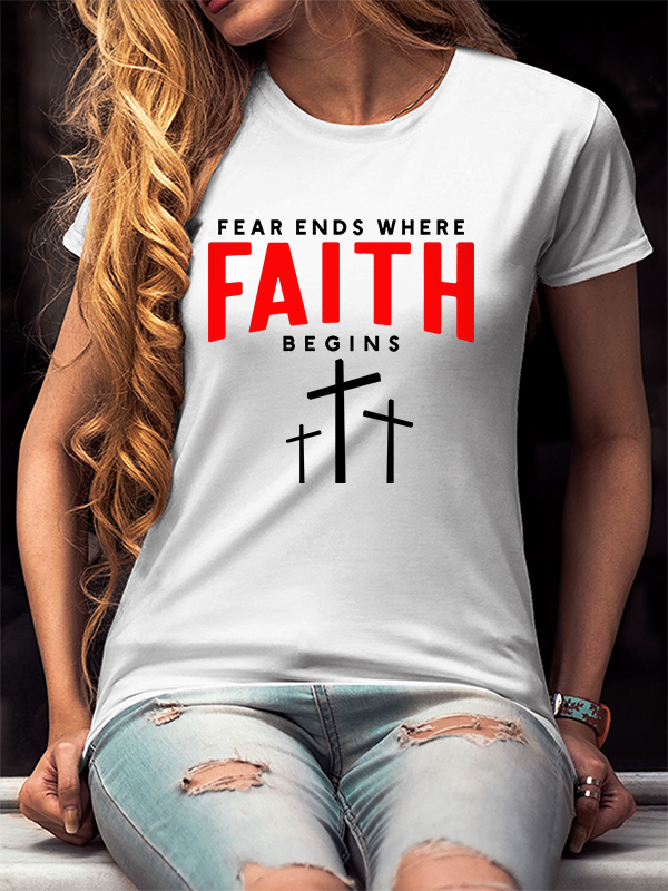 Fear Ends Where Faith Begins Christian Cotton T-Shirt