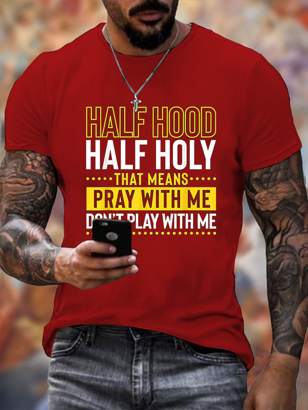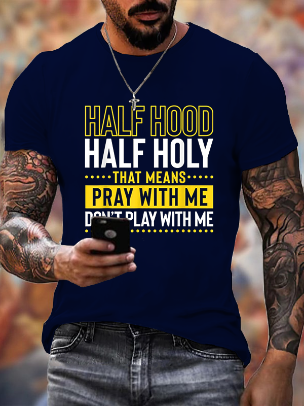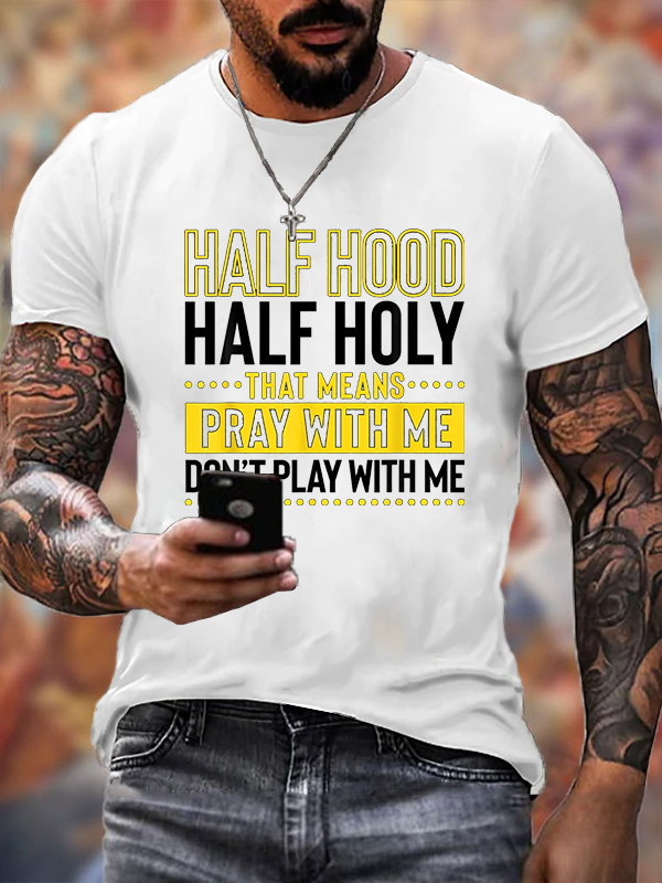 Half Hood Half Holy That Means Pray With Me Don't Play With Me Premium Mercerized Cotton Tee