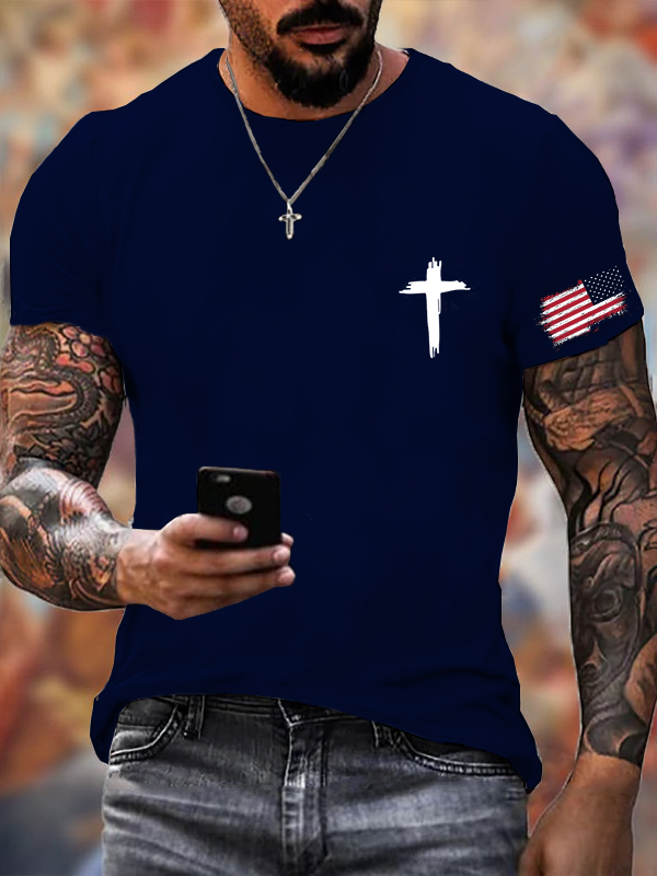 Men'S Flag Cross Print T-Shirt
