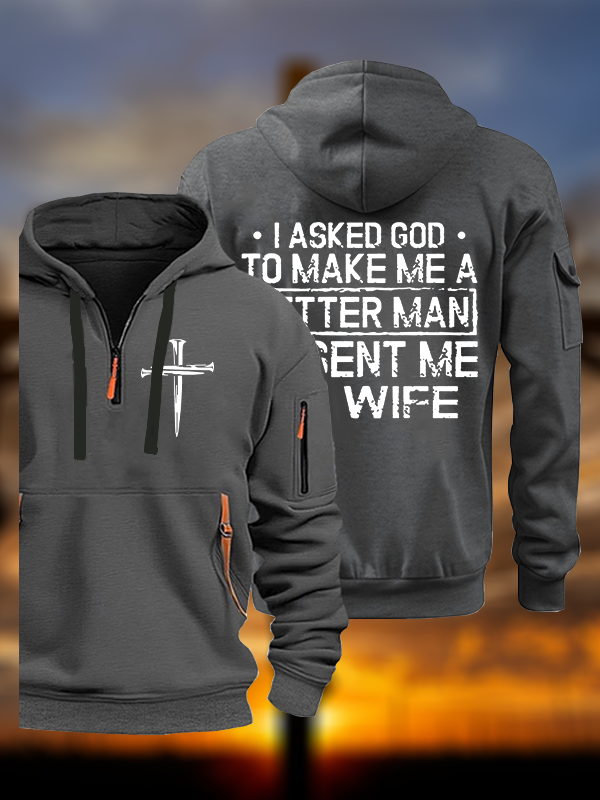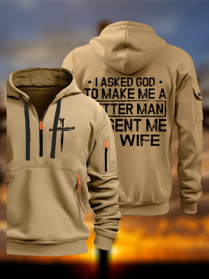I Asked God To Make Me A Better Man He Sent Me My Wife Christian Zipper Hoodies