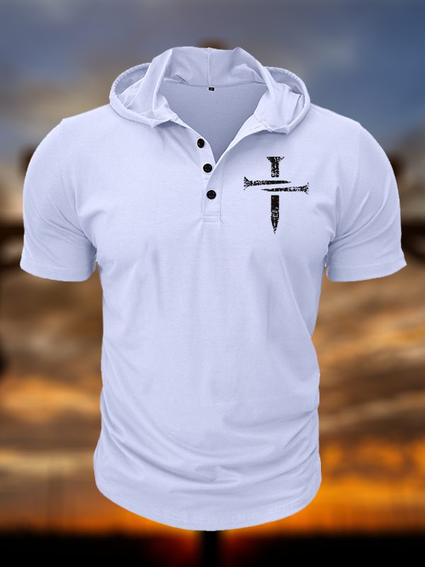 3 Nails Jesus God Cross Hooded Henley T Shirt