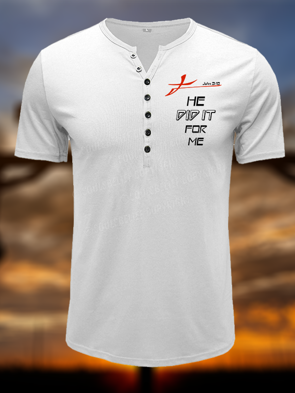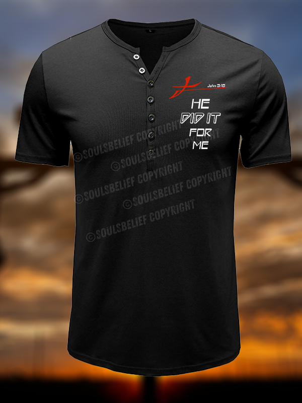 He Did It for Me John 3:16 Christian Henley T Shirt