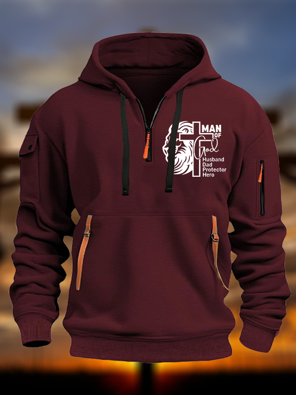 Man Of God Husband Dad Protector Hero Jesus God Christian Zipper Hoodies