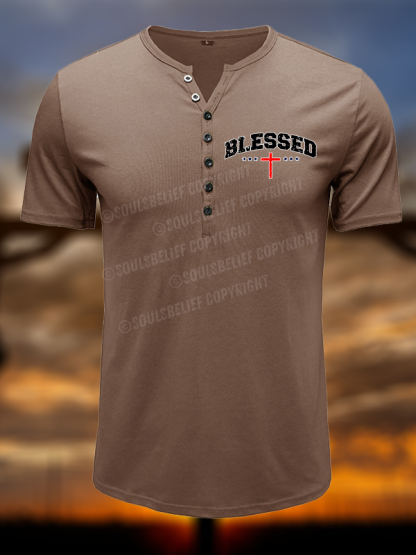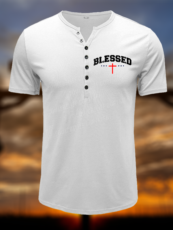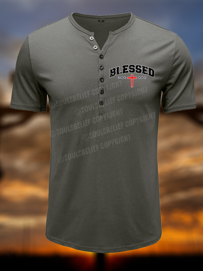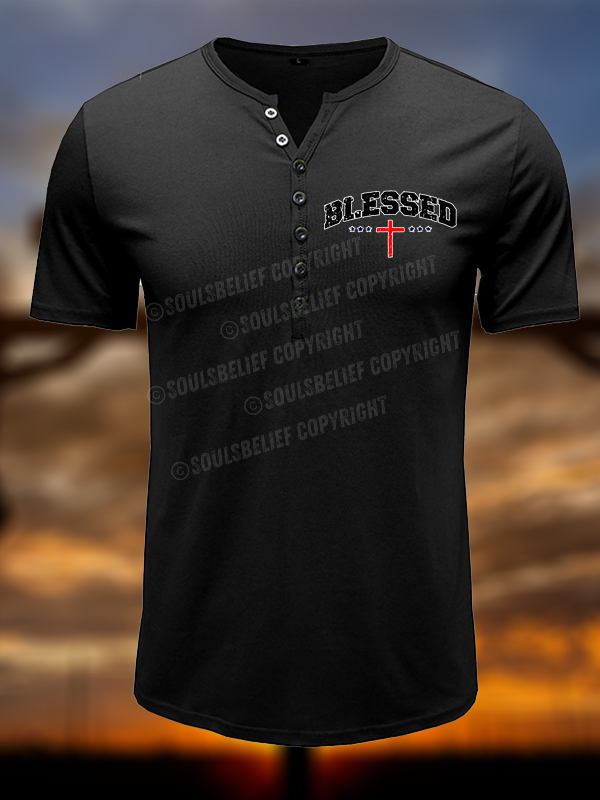 Blessed Cross Christian Henley T Shirt