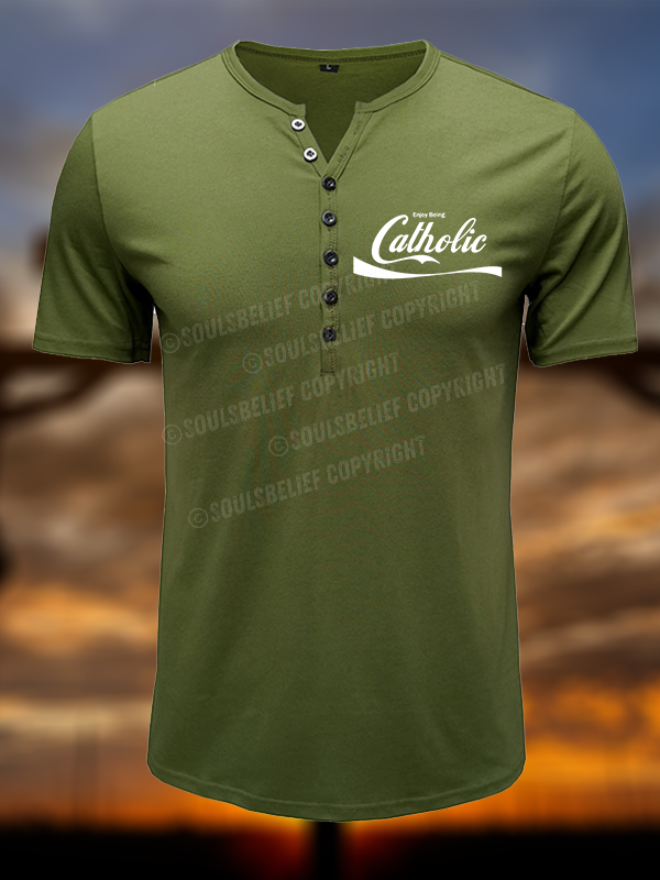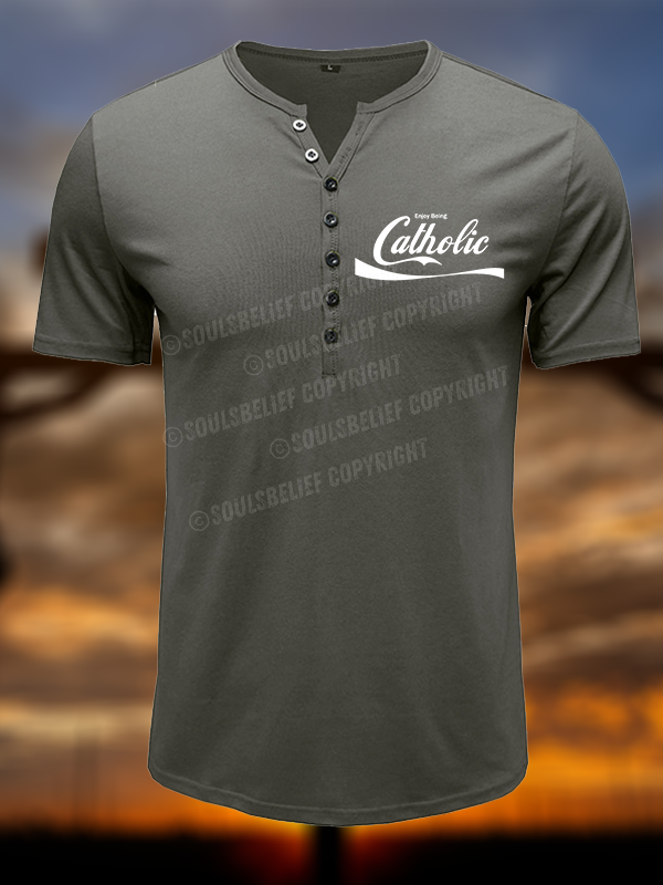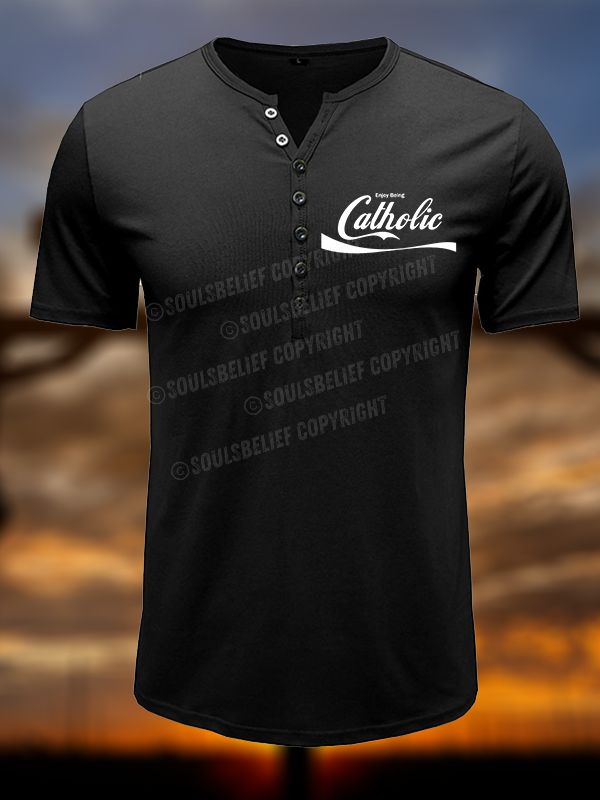 Enjoy Being Catholic Christian Henley T Shirt
