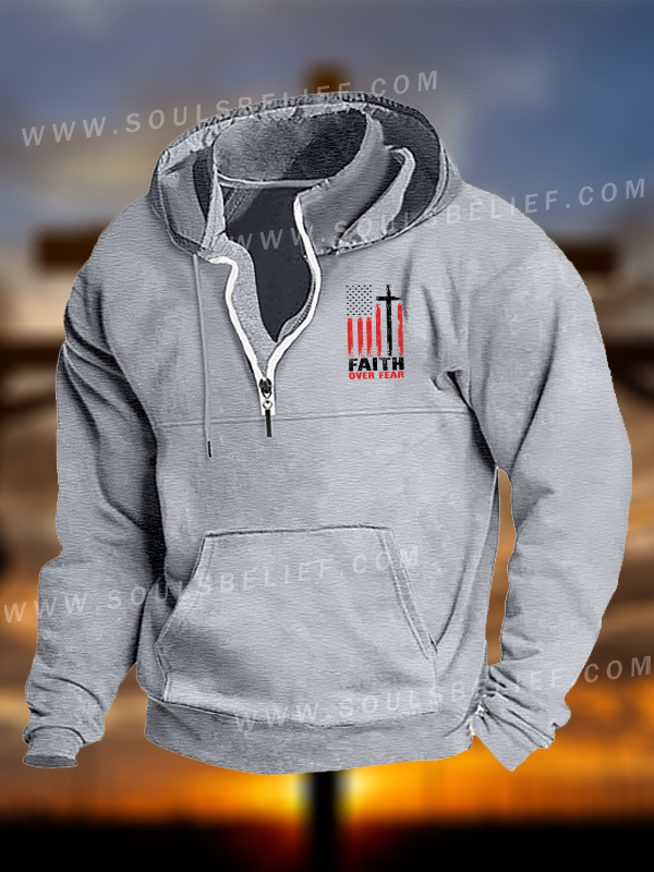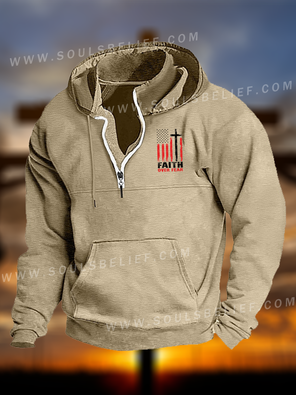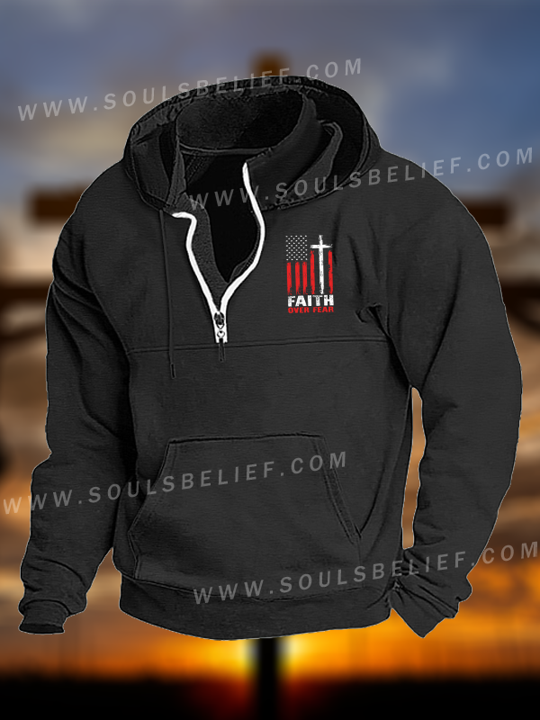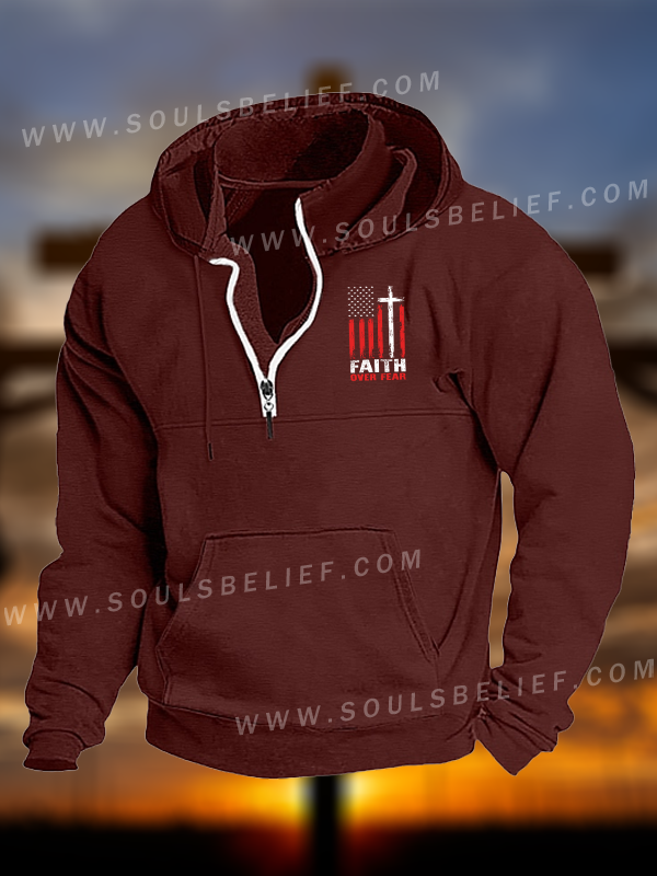 Faith Over Fear Flag Christian Pocket Zipper Hoodies