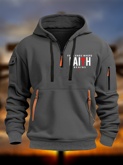 Fear Ends Where Faith Begins Cross Christian Zipper Hoodies