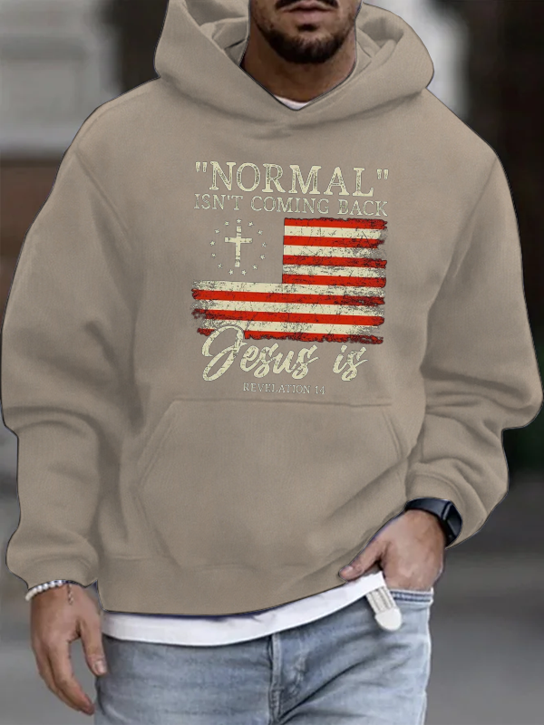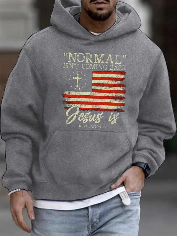 Men's Normal Isn't Coming Back, Jesus is with Flag Cotton Hoodie