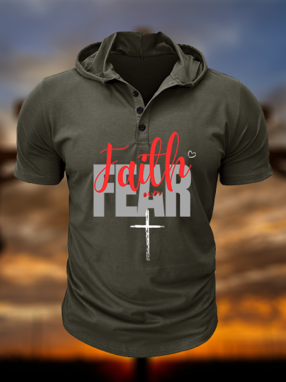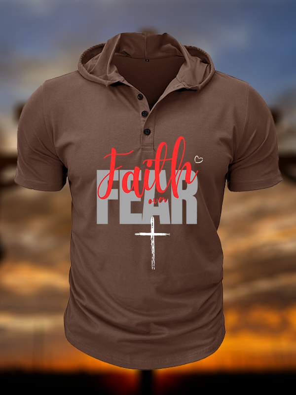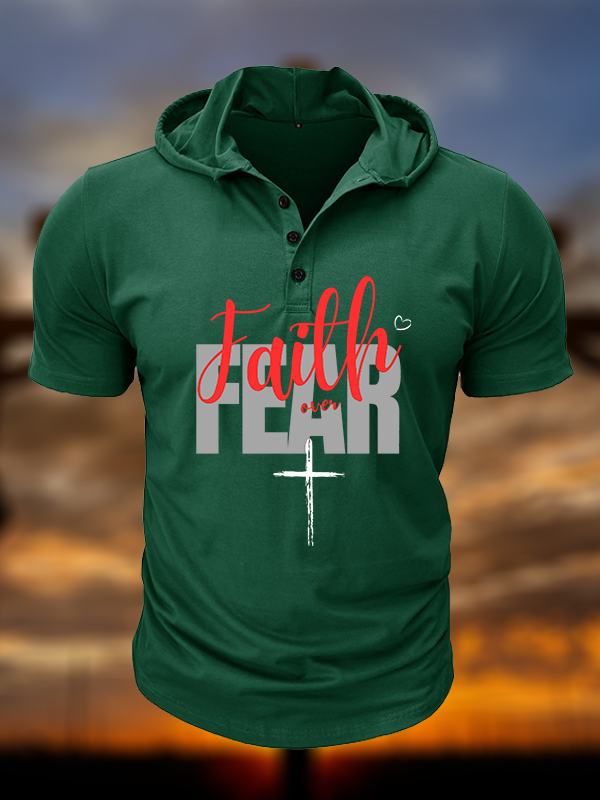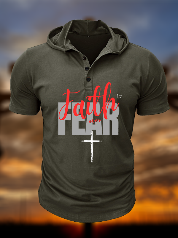 Faith over Fear Christian Hooded Henley T Shirt