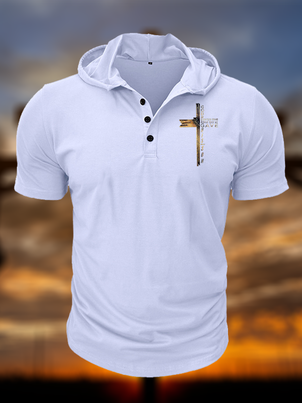 Cross Faith Print Hooded Henley T Shirt